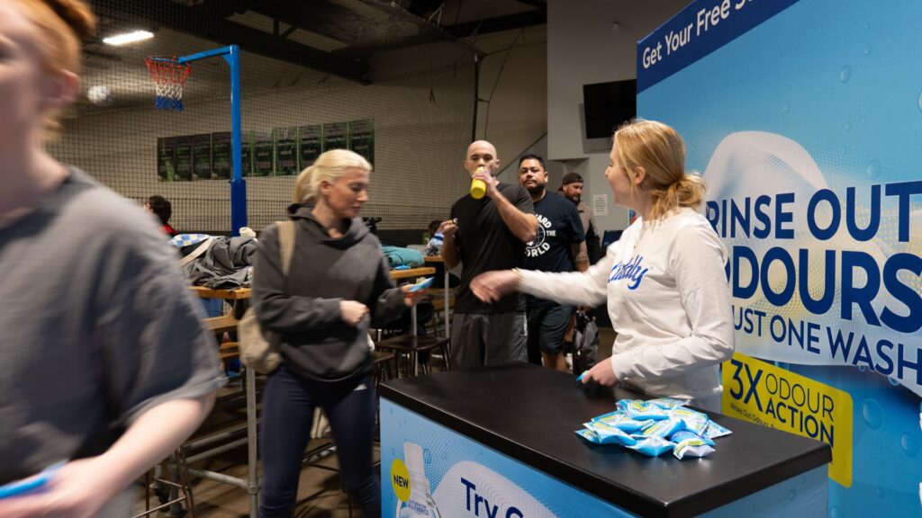 The campaign was strategically aligned with Cuddly’s 30-minute wash cycle—perfectly mirroring the average workout duration. Positioned for people on the go, the message resonated with gym-goers who value efficiency and convenience in caring for their workout gear. Once awareness was established, CARTEL executed an end-to-end sampling program, managing staffing, logistics, and on-site activation to ensure a seamless brand experience.